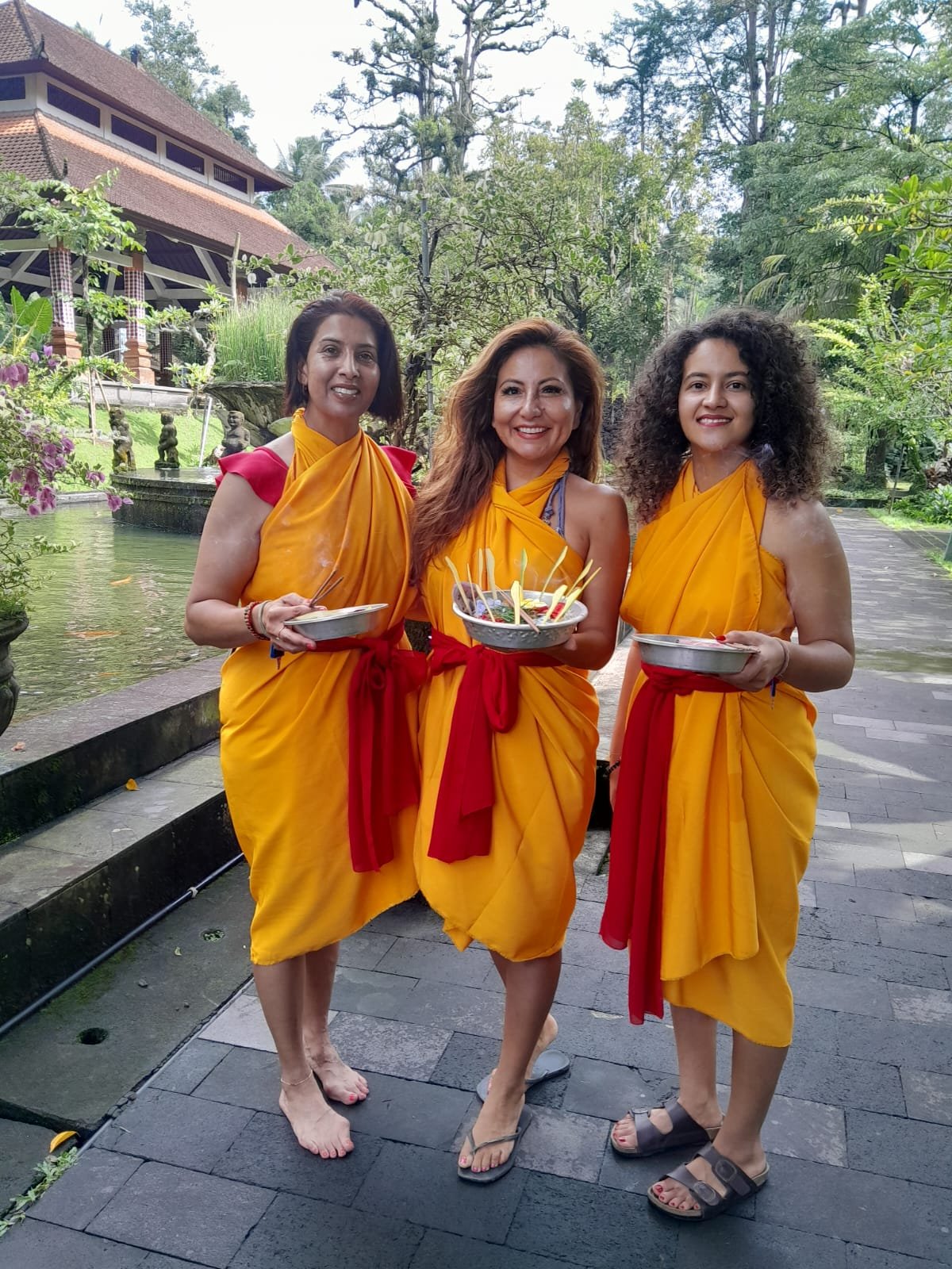 - Modlitba – krátká meditace a požehnání od pemangku (balijského kněze), pokud je rituál veden oficiálně.