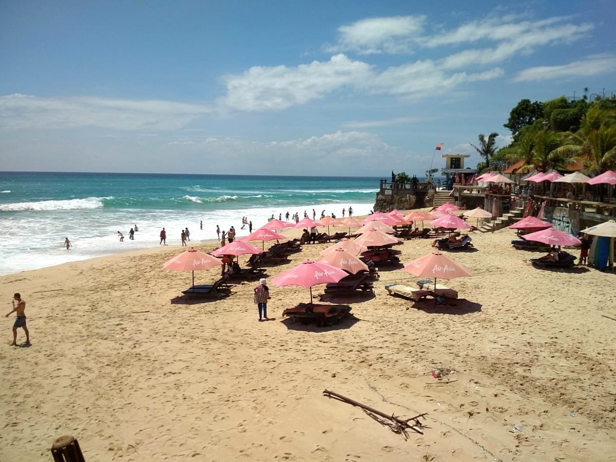 - Padang Padang Beach: Další oblíbená surfařská pláž, Padang Padang, je známá svým bílým pískem, tyrkysovou vodou a světově proslulými vlnami. Ve srovnání s Dreamlandem je menší, ale stejně krásná.