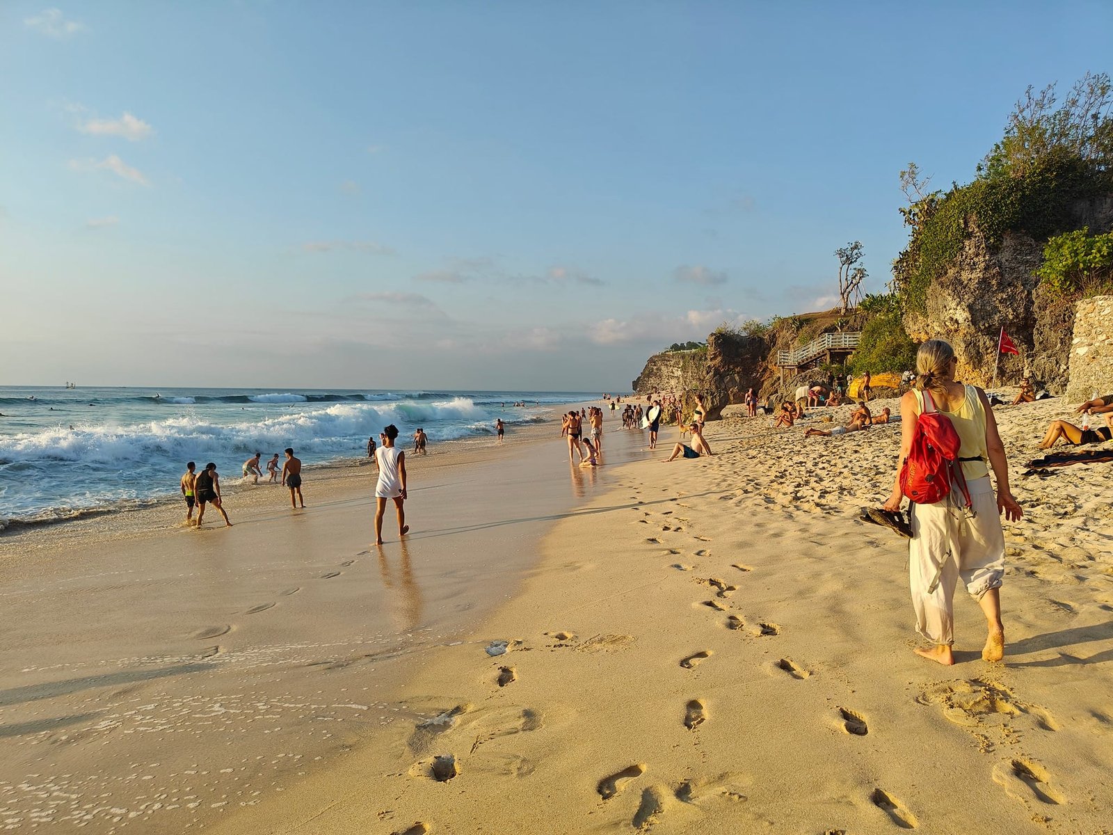 Jedním z nejpůsobivějších rysů Dreamland Beach je její prostředí. Strmé vápencové útesy lemují půlměsícové pobřeží a dodávají pláži jedinečný, přirozeně dramatický vzhled. Zlatavý písek přechází do křišťálově čisté vody a místa je tu opravdu dost — můžete si klidně rozložit ručník a vychutnat si slunce. Na rozdíl od některých známějších pláží na Bali Dreamland jen zřídka působí přeplněně, takže si tu vždy najdete pohodové místo k odpočinku.