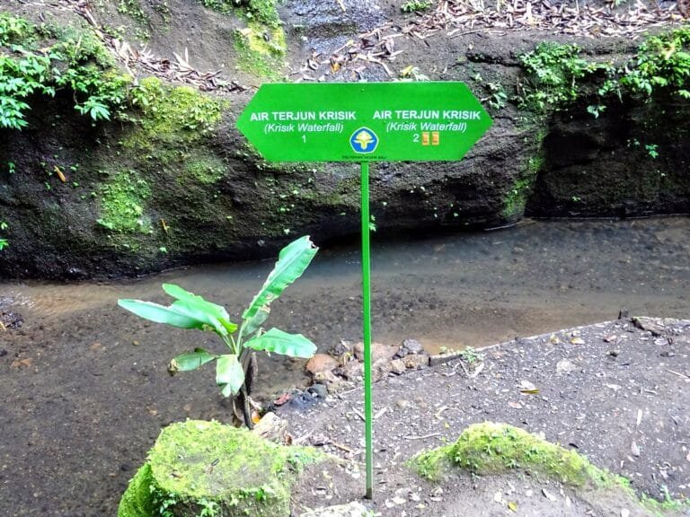 Krisik Waterfall je poměrně malý, ale malebný vodopád, který padá po skalnatém útesu do čistého jezírka pod ním. Voda pochází z nedalekých kopců, je chladná a osvěžující — ideální pro rychlé osvěžení po procházce okolními rýžovými poli. Přírodní okolí vodopádu je stejně okouzlující, s hustými tropickými lesy poskytujícími stín a zvukem ptáků a tekoucí vody vytvářejícím uklidňující atmosféru.