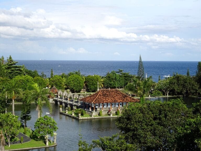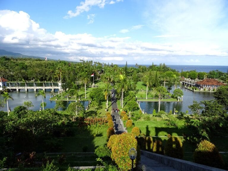 Taman Ujung, známý také jako Taman Ujung Soekasada, je historický vodní palác nacházející se v oblasti Karangasem na východním Bali. Původně byl postaven v roce 1909 králem Karangasemu, Anakem Agungem Anglurahem Ketutem Karangasem, a tento rozsáhlý palácový komplex kombinuje balijský, nizozemský a čínský architektonický styl, čímž vytváří ohromující místo, kde se prolínají dějiny, kultura a příroda. Palác dříve sloužil jako královský útočiště, místo odpočinku, konání ceremonií a hostění významných návštěv.