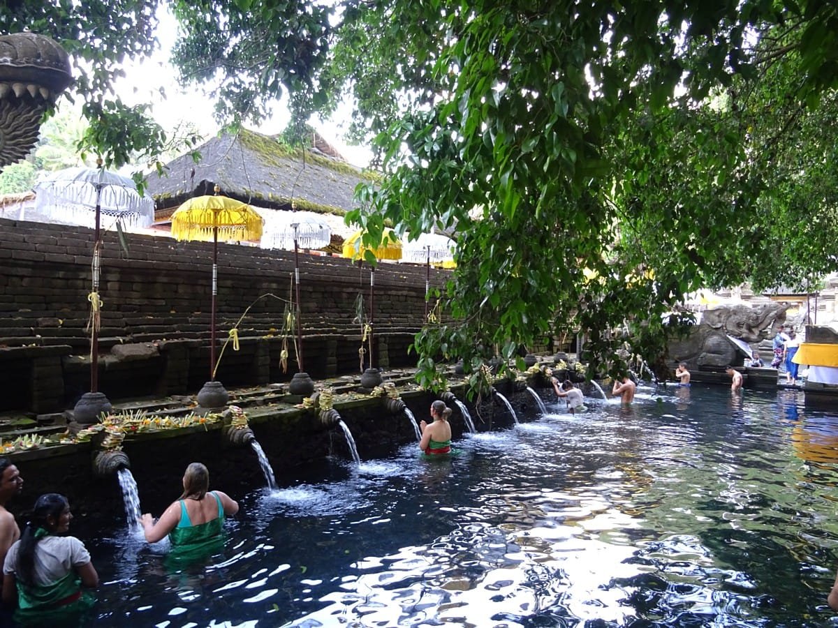 Srdcem chrámu Tirta Empul je posvátný pramen, který se nachází v oddělené části za očistnými bazény. Voda z pramene přirozeně vytéká ze země a je odváděna do bazénů i dalších částí chrámu. Voda je křišťálově čistá a můžeš vidět, jak pramen bublá z hlubin země, což vytváří klidnou a posvátnou atmosféru.